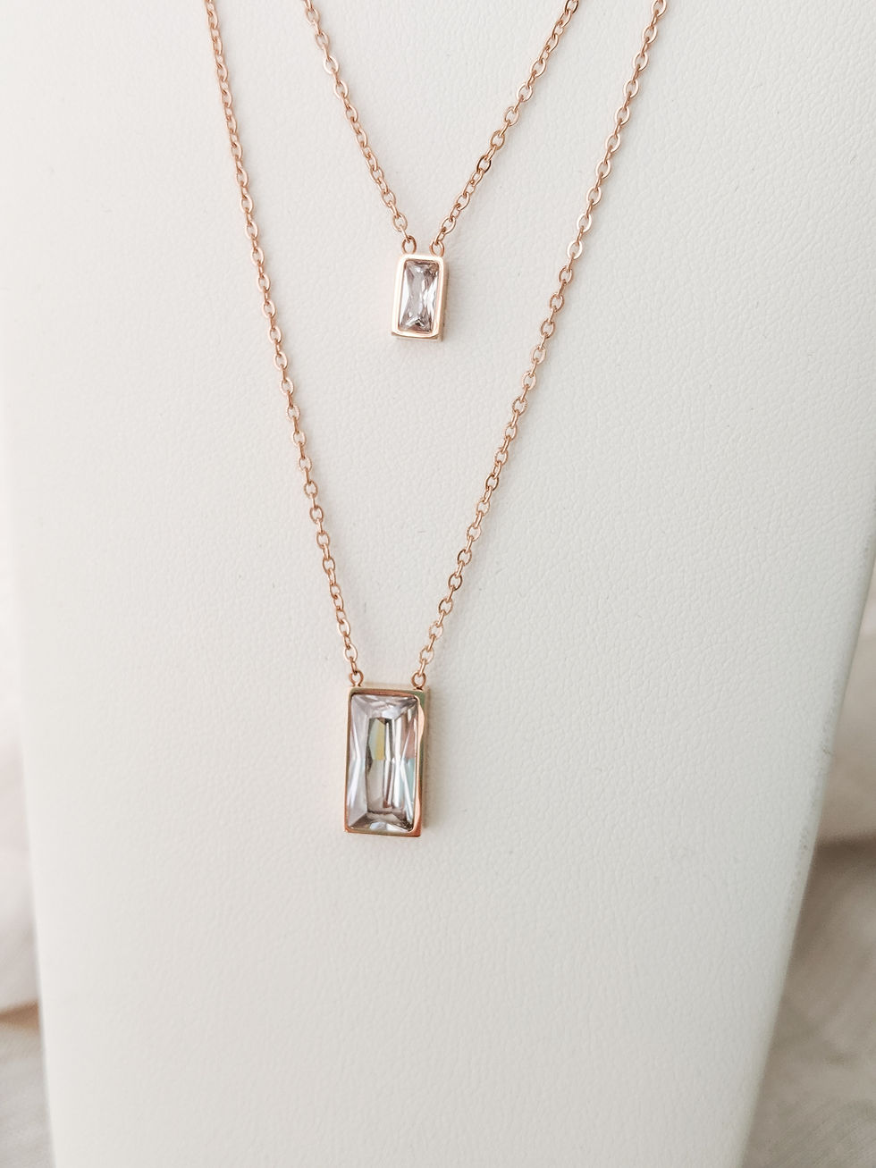 Rose Gold Two Chain Square Pendant Chain Necklace