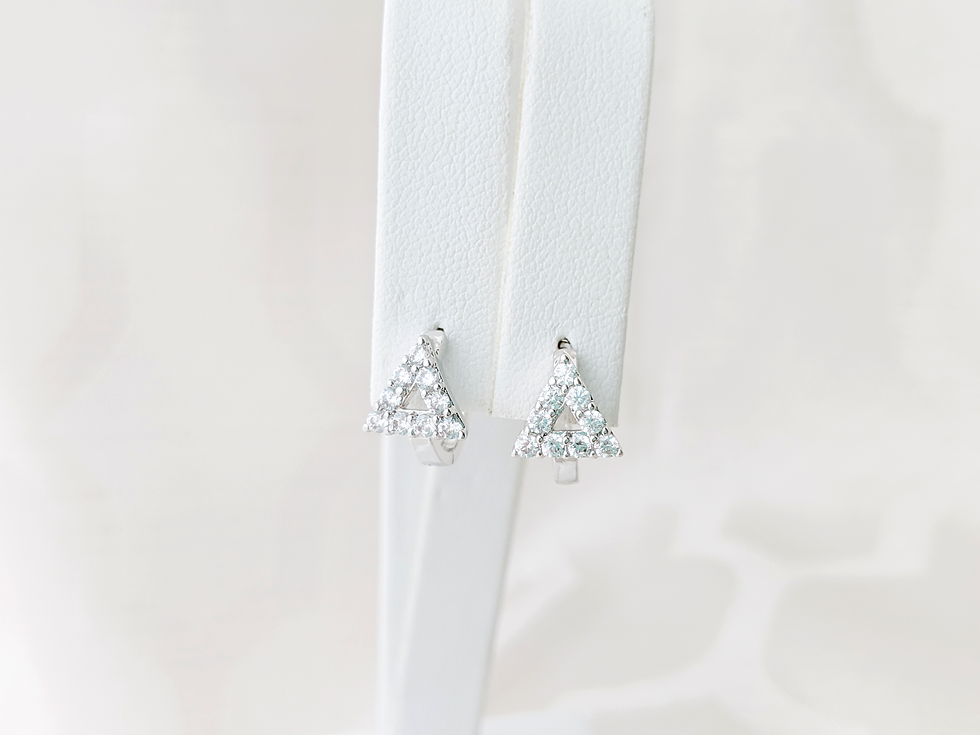 Silver Triangle Diamond Huggie Stud Earrings